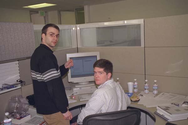 Wilko, ein weiterer Interni aus Deutschland, mit seinem irischen Chef Brendan vertieft in Ihrer Hauptbeschäftigung: Diskutieren